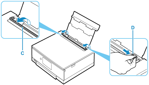 Verschuif de rechterpapiergeleider (D) om beide papiergeleiders te openen.
