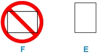 قم دائمًا بتحميل الورق بالاتجاه الطولي (E). يمكن أن يؤدي تحميل الورق بالاتجاه العرضي (F) إلى انحشار الورق.