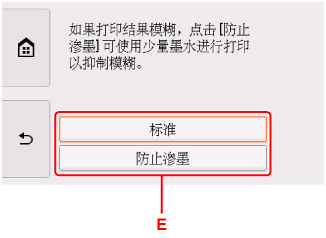 如果打印结果模糊,请选择防止渗墨 通过使用少量墨水进行打印以改善模糊情况。