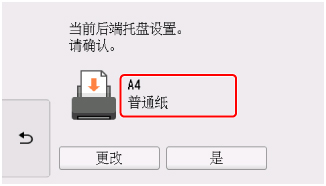 如果触摸屏上的页尺寸与后端托盘中装入的纸张的尺寸相匹配,请选择是。