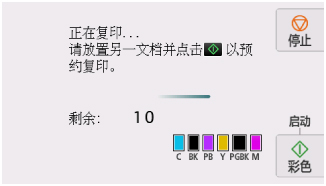 如果扫描时预约复印作业失败。请重新开始。出现在触摸屏上,选择OK并点击停止以取消复印。 此后,复印未完成复印的文档。