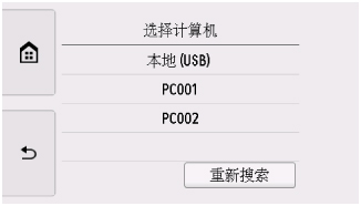 为USB连接的计算机选择本地(USB),或为连接到网络的计算机选择转发已扫描数据的计算机。