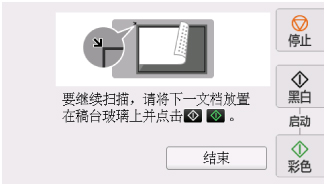如果继续扫描,将原稿放到稿台玻璃上并开始扫描。
