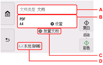 • 在扫描设置屏幕上为格式选择了PDF高压缩PDF时: