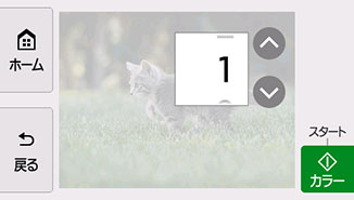 をタップして、印刷部数を指定します。タッチし続けると、10枚ずつ部数が増減します。