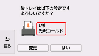 表示された用紙のサイズと種類が、後トレイにセットした用紙と同じであれば[はい]を選ぶ