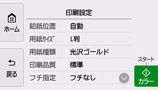プリンターの操作パネルを使って写真印刷するときの設定項目