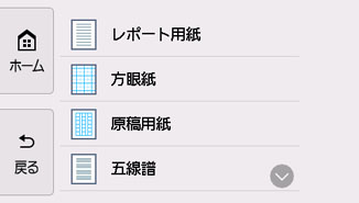 方眼紙、五線譜、チェックリストやスケジュール表などの定型フォームを印刷できます。