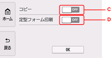 D:プリンターに内蔵されている定型フォームを印刷をするときの両面印刷を設定します。