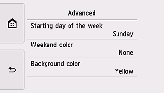 Du kan angive forskellige egenskaber, f.eks. begyndelsen af ugen (søndag eller mandag), de helligdage, der skal markeres med farve, og baggrundsfarven.