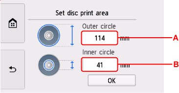 Mesurez les diamètres externe et interne de la surface d'impression du disque imprimable, et prenez soin de définir une valeur inférieure à la valeur mesurée pour le diamètre externe et une valeur supérieure à la valeur mesurée pour le diamètre interne.