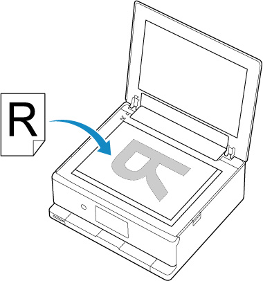 2. Umetnite izvornik tako da je STRANA ZA SKENIRANJE OKRENUTA PREMA DOLJE na kopirnom staklu.