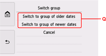 • Q: Selezionare per cambiare il gruppo di foto.