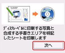 ここでは、ディスクレーベル手書きナビシートを印刷して、写真に手書き文字を合成してディスクレーベルに印刷するまでの操作手順について説明します。