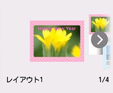 を選ぶと、定型イラストや文字の向きを選べます。写真が逆さまのときは、定型イラストや文字を180度回転させると、写真の上下に合わせて印刷できます。