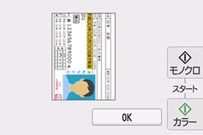 表示される案内に従ってIDカードの表面を下に向けて原稿台にセットし、[OK]を選ぶ