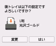 表示された用紙のサイズと種類が、後トレイにセットした用紙と同じであれば[はい]を選ぶ