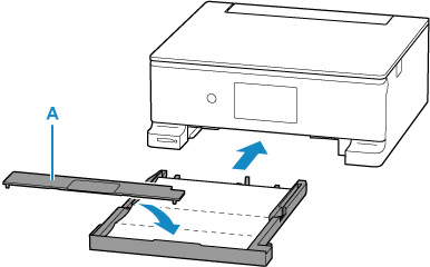 Bevestig de cassetteklep (A) en plaats vervolgens de cassette in de printer.