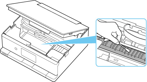 Als het probleem zich blijft voordoen nadat u de onderste plaat nogmaals hebt gereinigd, zijn de uitstekende delen aan de binnenkant van het printer mogelijk vuil. Veeg inktresten op uitstekende delen weg met bijvoorbeeld een wattenstaafje.