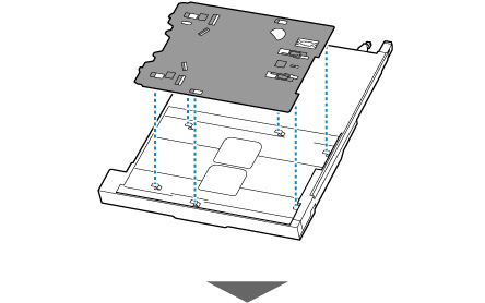 Obráťte viacúčelový zásobník spodnou stranou nahor, zarovnajte ho so šiestimi zarážkami a potom ho nasaďte.