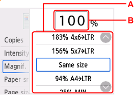Η ρύθμιση στη Μεγέθ. (Magnif.): 94% A4->LTR/156% 5x7->LTR/183% 4x6->LTR