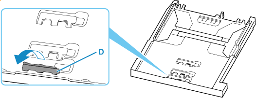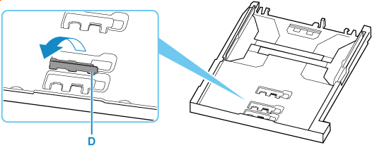 手前の用紙ガイド(D)を用紙サイズに合わせてセットする