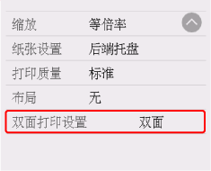 在复印待机屏幕中选择设置以显示打印设置屏幕,为双面打印设置选择双面,然后选择OK