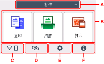 时,打印机已进入简易无线连接和智能手机连接的待机模式。 - E: 设置