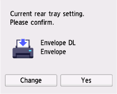 如果觸控式螢幕上顯示的頁面大小和媒體類型與後端托盤中裝入的信封大小和類型相符,請選擇是(Yes)。