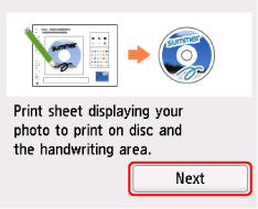 Puede utilizar una hoja manuscrita de la etiqueta de disco impresa desde la impresora para imprimir una etiqueta de disco (para un BD, DVD, CD u otro disco) que combine una foto con texto manuscrito o imágenes dibujadas a mano.