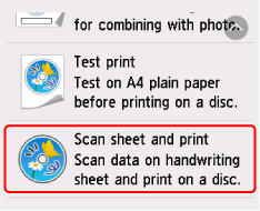 Puede seleccionar Impresión de prueba (Test print) para hacer una impresión de prueba en papel normal de tamaño A4 antes de imprimir en un disco imprimible. Siga las instrucciones que aparecen.