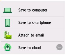 Escanear (Scan) en la pantalla INICIO.Aparecerá la pantalla para seleccionar dónde guardar/reenviar los datos.
