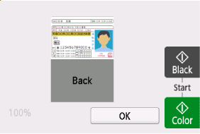 Tempatkan kartu ID dengan sisi depan menghadap ke bawah pada platen dengan mengikuti instruksi pada layar dan pilih OK.