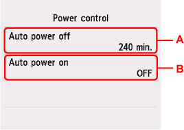 B: Memilih NYALA(ON) memfungsikan pencetak untuk menyala secara otomatis ketika perintah pemindaian dari komputer atau data pencetakan dikirim ke pencetak.