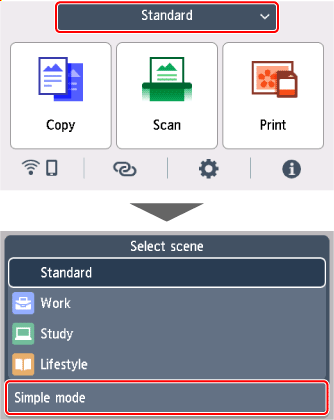 Pilih Mode sederhana(Simple mode) pada layar BERANDA untuk mengalihkan ke mode sederhana.