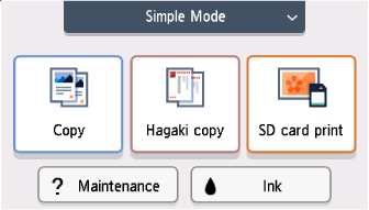 Mode sederhana memungkinkan Anda untuk menyalin pada kertas biasa dan kartu pos, serta melakukan pengoperasian seperti mencetak foto dari kartu memori dengan mudah.