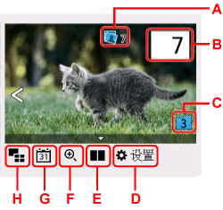 可以指定每张照片的份数。 显示要打印的照片,然后在显示所需照片时指定份数。