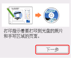 按照屏幕上的说明放置可打印光盘。