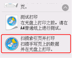 可以选择测试打印,先在A4尺寸的普通纸上进行测试打印,然后再在可打印光盘上打印。 按照显示的说明进行操作。