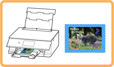 可以使用从打印机打印的手写页将手写文本和手绘图片与保存在存储卡上的照片合为一体进行打印。