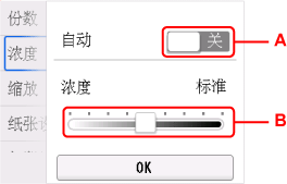 A:选择此选项可激活/停用自动浓度调整。