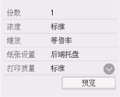 打印设置屏幕上显示预览时,选择预览可以在预览屏幕上预览打印输出图像。