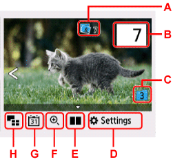可以指定每張相片的份數。 顯示要列印的相片,並在顯示所需相片時指定份數。