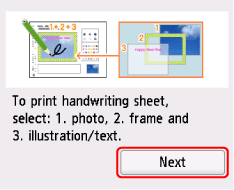您可以使用從印表機列印的手寫頁來列印與手寫文字或手繪圖片合併的相片。