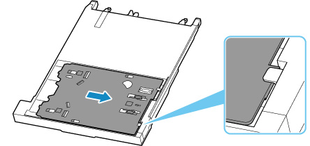 請確保多用途托盤上的孔與紙匣背面的卡榫對齊,插入多用途托盤。 如果多用途托盤未正確安裝,則在將紙匣插入印表機時,可能會損壞多用途托盤。