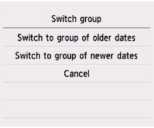 หากมีข้อมูลภาพถ่ายมากกว่า 2,000 รูปบันทึกอยู่บนการ์ดหน่วยความจำ ข้อมูลรูปถ่ายจะถูกจัดแยกเป็นกลุ่ม กลุ่มละ 2,000 รูป ตามลำดับเวลาย้อนหลัง (วันที่ที่ปรับปรุงครั้งล่าสุด) โดยอัตโนมัติ ตรวจสอบข้อความที่แสดงขึ้นบนหน้าจอสัมผัส และเลือก OK