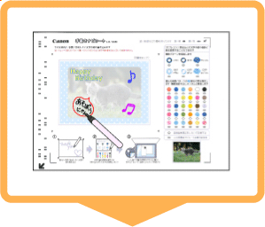 คุณสามารถใช้แผ่นลายมือที่พิมพ์จากเครื่องพิมพ์เพื่อรวมข้อความที่เป็นลายมือและรูปภาพที่วาดด้วยมือกับภาพถ่ายต่างๆ ที่บันทึกไว้บนการ์ดหน่วยความจำสำหรับการพิมพ์ได้