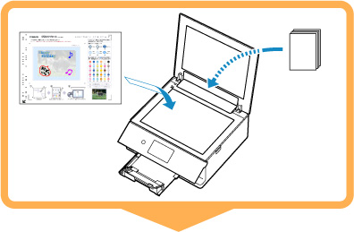 จากนั้น ให้วางแผ่นลายมือบนกระจกแท่นวาง และป้อนกระดาษที่จะพิมพ์ลงในเทรย์ด้านหลัง