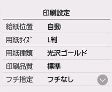 印刷メニューによって、変更できる設定項目が異なります。ここでは、[選んで写真印刷]で印刷するときの設定項目について説明しています。