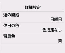 週の始まり(日曜日、または月曜日)、色を付ける休日、背景色などを指定できます。